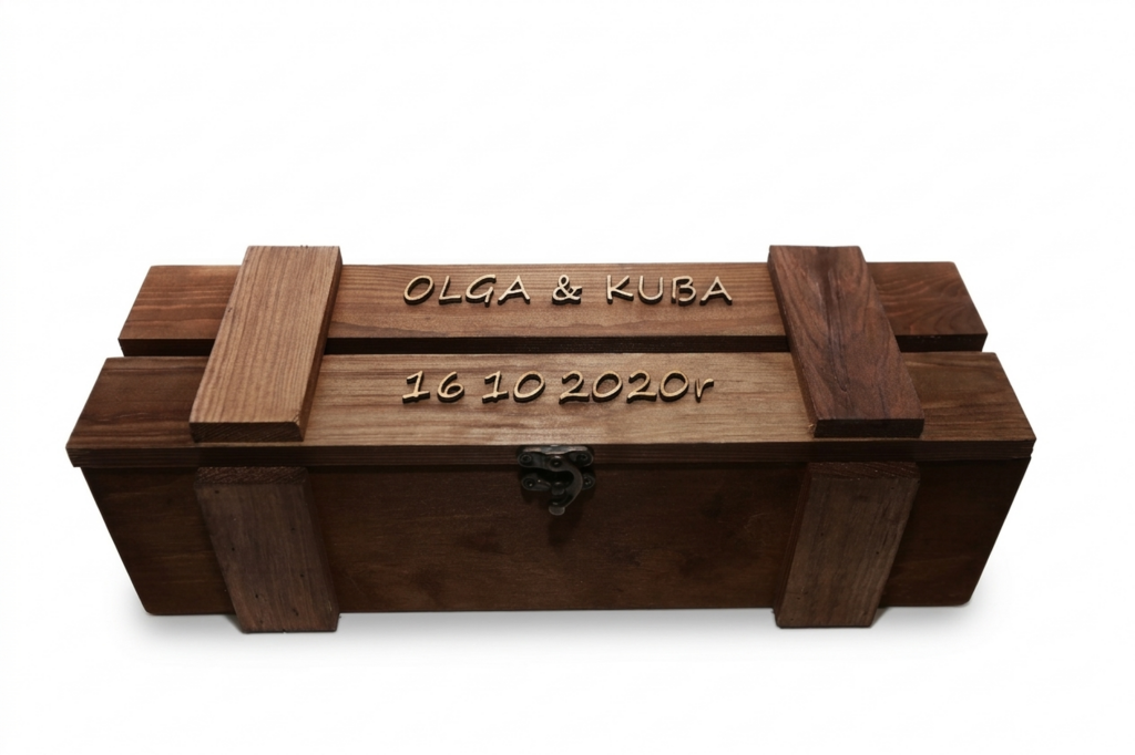Personalizacja produktu polega na wykonaniu cięcia laserem elementów na zamknięciu w górnej części Kuferka.