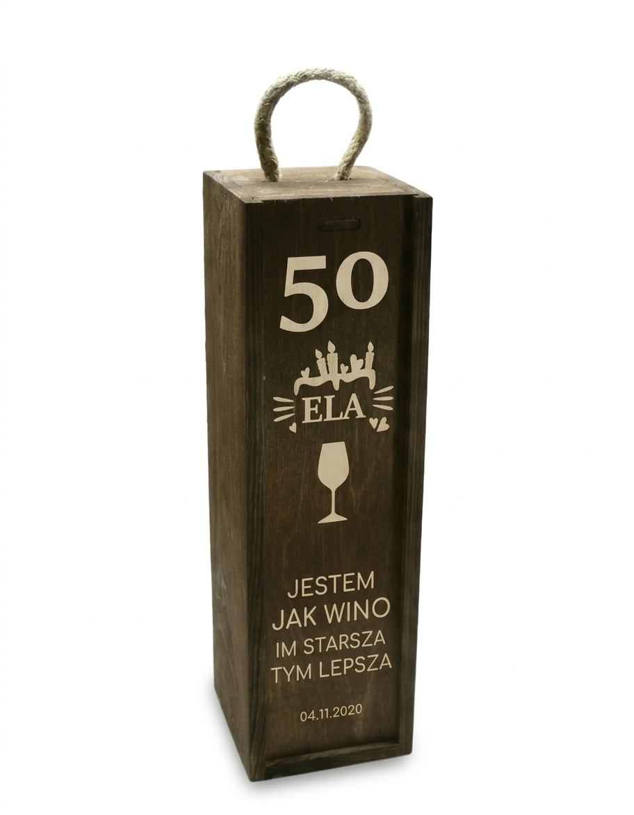 Skrzynka personalizowana drewniana na wino z odsuwanym zamknięciem.