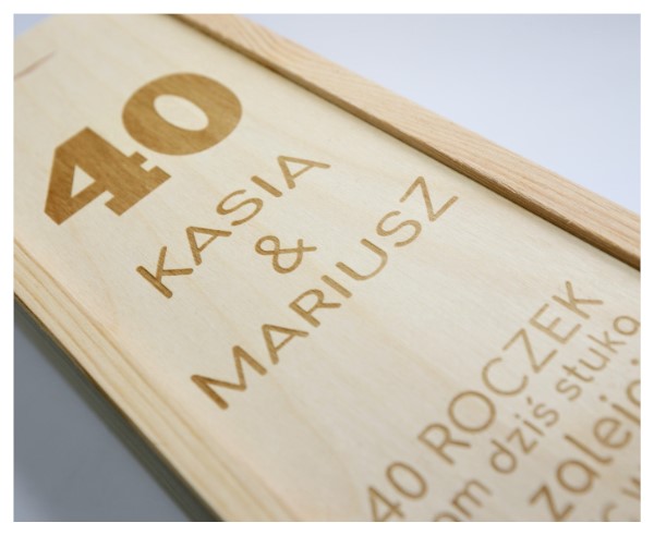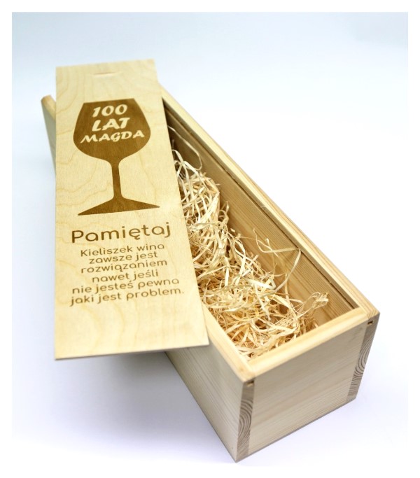 Skrzynka personalizowana drewniana na wino z odsuwanym zamknięciem.